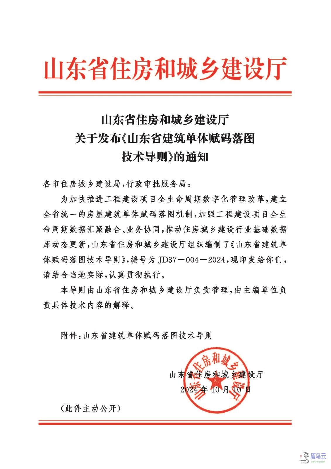 山东省住房和城乡建设厅关于发布《山东省建筑单体赋码落图技术导则》的通知.pdf